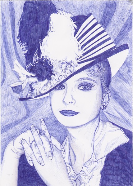 Леди N., эммм... то ли размер рисунка маловат, то ли так нарисовано, но выше юбки совершенно непонятно где что. Рука еще проглядывается, а дальше волны ткани, перья... и полный ступор при попытке выстроить четкую картину. Когнитивный диссонанс: вижу, что нарисовано здорово, а понять что где не могу ((