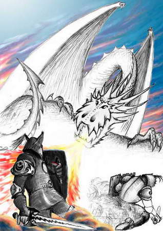 Вот скетч-набросок "Забияка атакует" к моему комиксу "Трон АРО"