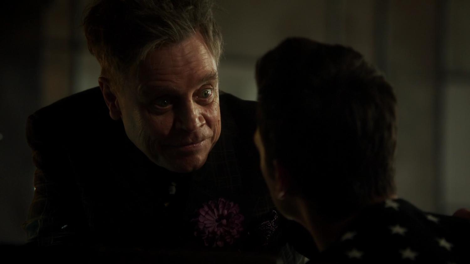 Джеймс сильно постарел и превратился в гибрид Ганнибала Лектера и Джокера. Звучит круто, правда? Ну... вообще-то да. Марк Хэмилл очень хорош. Как и ожидалось, он немного переигрывает, создавая контраст с унылыми недоигрывающими героями. Одни хотят играть, но не могут, другие могут, но не хотят... Образ получился несколько типичный, но привлекательный. Он заслужил больше эфирного времени. У Флэша теперь есть собственный Джокер! Это не так уж плохо... если не вспоминать о Джеймсе, который в каноне является интереснейшим персонажем и не имеет ничего общего с этим безумным чуваком.