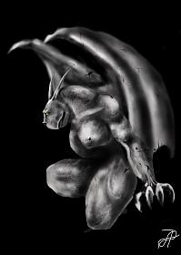 Вот сделала набросок. Мантикора-невольник с отрубленными крыльями...