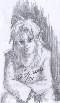 Ну, что-нить придумаю... А здесь можно давать ссылки на другие форумы, с указанием где расположены мои рисунки? Это не будет нарушением каких-либо правил форума МФ? А вот небольшая зарисовочка - как говорится свежачок - сегодня утром перед стажировкой за 5 минуток нарисовала. Эльф... такой вот получился - представитель небогатого сословия, этакий крестьянин - взъерошенный, мечтательный и довольный жизнью! PS: у меня вопросик: как вы вставляете картинки в текст сообщения? У мя что-т не выходит...
