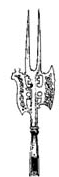 "Вилы с рессорой" (fourches a ressort или Fangeisen, если по немецки), у Функенов во втором томе, на стр 11. Где найти в сети -- не знаю. Ищи в поисковике на слово Fangeisen, вроде их в германских музеях много. |