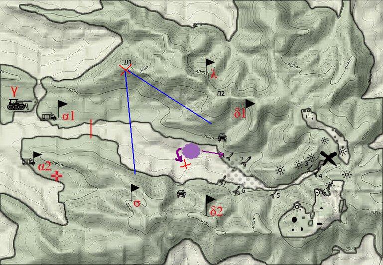 Лямбда готова к выстрелу; Гамма стреляет от красной черты, на прицеле у робота; Альфа 1 и 2, а так же Сигма на позициях, сцепились со второй группой; Дельта 2 на позиции, огневой контакт с обеими группами врага; Дельта 1 лоб в лоб сходятся с первой группой в лесу; Оба дрона на минном поле у пятой турели, прямого контакта с врагом нет; из активных уцелела только лазерная турель 6 - вопрос к мастеру, может ли она еще раз выстрелить в спину первому отряду или они слишком далек в лесу? Из потерь 3 турели и Бета 22 без винтовки, а отряд Альфа 2, соответственно, вообще без снайперов. У них: Первый отряд: осталось шесть мутонов с тяжелой плазмой, три сектоида и "плащ". Против них Дельта 1, возможно дроны (если пролезут), Лямбда (если видимость позволяет), возможно в спину может достать Дельта 2. Ситуация фиговая, если честно. Даже без тяжелого оружия у них численный перевес и исправный сканер. Если не повезет, Командирскому отряду копец, а за ним и Лямбде, так как подмоги ждать неоткуда. С другой стороны, при некотором везении, благо криссалидов уже нет, можно даже захватить "плаща". Второй отряд: Робот, четыре мутона с тяжелой плазмой, 1 мутон с бластером, 2 криссалида и "плащ". Огневая мощь у них гораздо выше, но на следующем ходу под ударом точно будет только БМП, остальные пока не сильно раскрыты. А сам отряд врага мало что на открытом месте, так еще пережил мощный обстрел. Не знаю, правда, могут ли паниковать мутоны, робот та точно нет. Здесь обязательно нужно валить робота, ну бластероносца. Желательно еще криссалидов, пока они к кораблю не ушли. Вопрос к мастеру - Лямбды из-за тарелки хоть кого-нибудь из этого отряда видят? Тополь, ПТУР снят с первой машины, так что перезаряжается вручную.