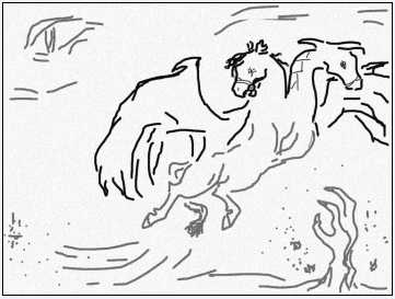 И у меня сканера нет (и знакомых со сканером тоже не имеется:)) Карандашом на бумаге у меня гораздо лучше выходит, чем мышью в фотошопе возить. Очень лошадей рисовать люблю, они у меня лучше всего получаются (куда краше, чем тот нарочито небрежный ужас, который я здесь выкладывал:))