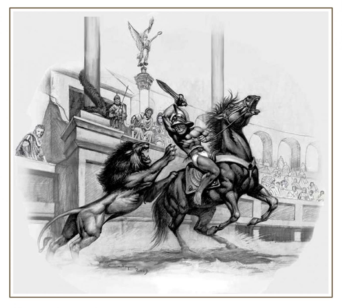 Конный гладиатор бестиарий. Бумага, карандаш.