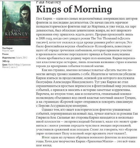 Скрытый текст - ..."реалистичное" фэнтези про войну и интриги, в духе Джорджа Мартина и Анджея Сапковского: