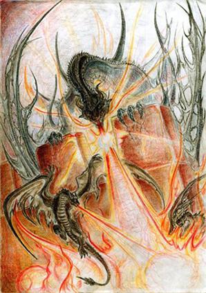 А вот Ваш покорный слуга свою старую работу завершает.. думаю, это будет один из последних рисунков о драконах.. кажется, дама моего сердца права - надо научиться рисовать людей...